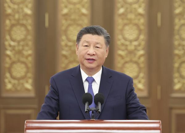 9月23日,党和国家领导人习近平、李强、赵乐际、王沪宁、蔡奇、丁薛祥、李希等在人民大会堂接见探月工程嫦娥六号任务参研参试人员代表并参观月球样品和探月工程成果展览。这是习近平发表重要讲话。新华社记者鞠鹏摄